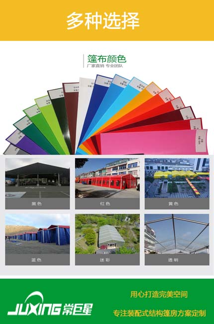 常巨星裝配的式篷房提供種類豐富的活動(dòng)篷房出售,租賃服務(wù),可根據(jù)活動(dòng)規(guī)模大小制造合適的活動(dòng)篷房尺寸。篷房經(jīng)理靈活,便捷使用的特點(diǎn),使其在戶外具有管飯的適用性。常巨星裝配的式篷房采用多個(gè)篷房自由組合的形式。